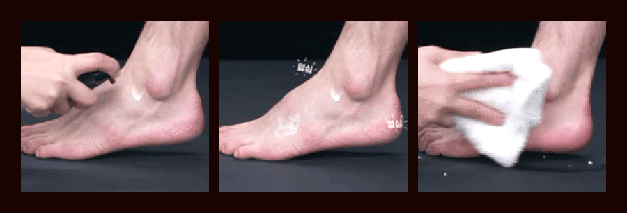 使用方法: 只要噴一噴、搓兩下,搓出死皮後,再用水沖一沖或是毛巾擦乾即可